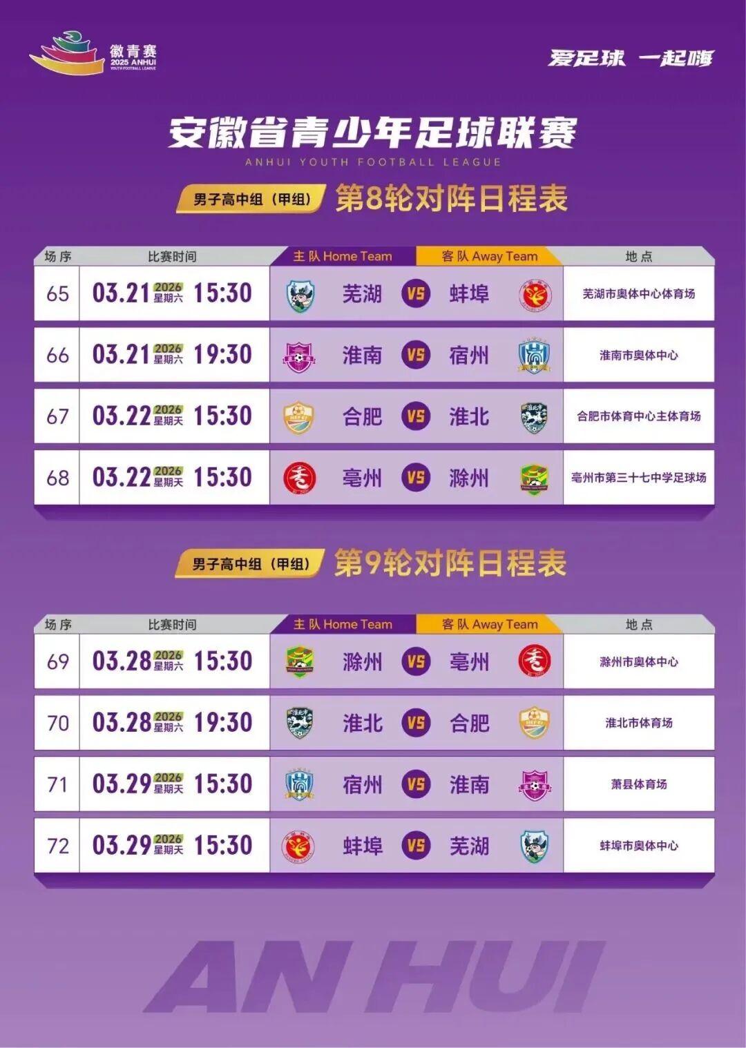 无法到达现场的球迷,可关注徽青赛官方媒体矩阵(公众号、视频号、抖音、小红书),后续会陆续发布直播链接,让您同步感受赛事激情!